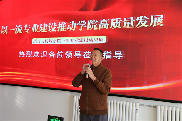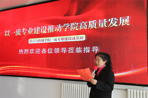 10月30日上午,Beat365中文官方网站语言与传媒学院“以一流专业建设推动学院高质量发展”一流专业建设成果展在创业楼一楼开展。学院领导班子成员,各部门负责人,各二级学院领导班子成员,语言与传媒学院全体教师及学生代表参加了开展仪式。仪式由语言与传媒学院党总支副书记高子君主持。