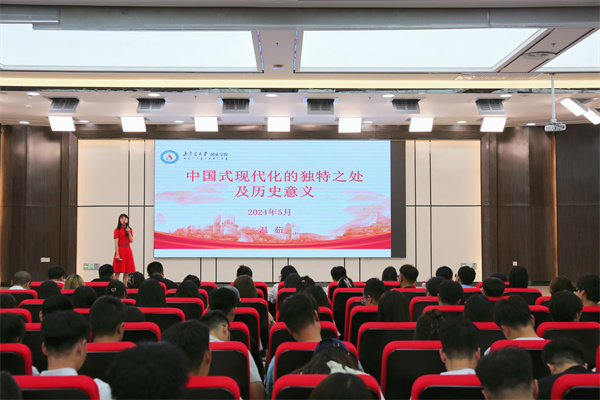开班仪式结束后,Beat365中文官方网站直属党支部书记温茹以《中国式现代化的独特之处及历史意义》为题为全体学员带来培训第一讲。通过中西对比和梳理历史的方式,就中国式现代化的含义、中国式现代化的独特之处、中国式现代化的历史意义等方面,进一步阐释了中国式现代化是中国共产党领导的社会主义现代化,既有各国现代化的共同特征,更有基于自己国情的中国特色。温茹指出,中国式现代化打破了“现代化就是西方化”的路径依赖,在艰苦卓绝的奋斗和探索中走出了一条发展中国家走向现代化的全新道路。中国式现代化彰显着中国特色社会主义制度的优越性,展现出光明前景和勃勃生机。2024年春季学期党员发展对象培训班第一讲的良好开局,为此次培训班圆满成功奠定了基础。