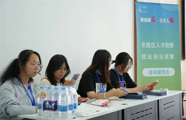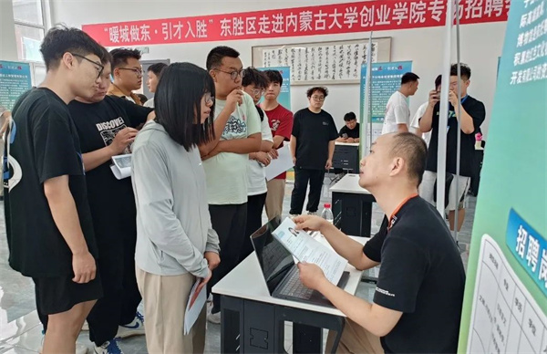 东胜区在现场设置人才政策咨询服务展位,工作人员通过政策解读、现场咨询、答疑互动、发放服务手册等形式,向广大高校毕业生宣传人才政策,为现场毕业生提供实习就业政策咨询服务。