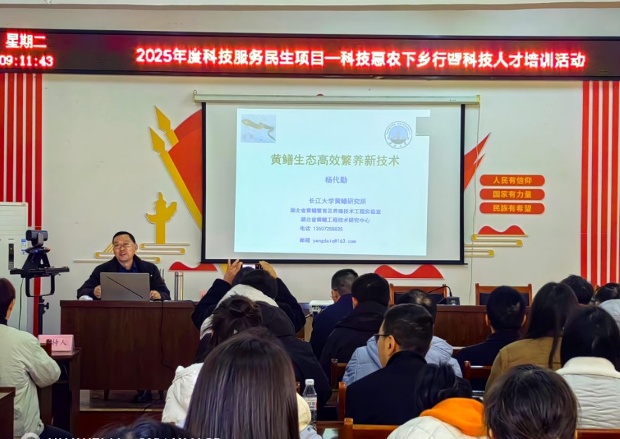 我校天游ty8线路1线路2检测中心特色水产健康养殖团队负责人农业农村部行业专项首席科学家、博士生导师杨代勤教授作为特邀嘉宾作首场报告。杨代勤教授结合最新的研究成果和产业发展现状,从稻虾鳝生态综合种养技术、黄鳝苗种人工仿生态繁育技术和黄鳝温室微流水高效养殖技术等方面介绍了黄鳝生态高效繁养新技术,黄鳝新的养殖模式和新技术以及产业发展带来的新机遇引起了大家的浓厚兴趣,受到线上线下参训人员密切关注和高度认可。