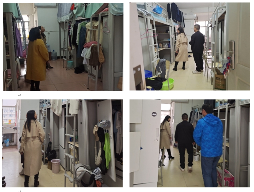 本次检查主要对宿舍的安全、卫生和违规电器等情况进行了检查,通过对学生宿舍的走访、排查,发现学生宿舍卫生整体情况很好,个别寝室仍需要改进,学生普遍能够遵守宿舍安全管理规定,绝大多数宿舍能够自觉保持宿舍内环境的干净整洁。刘晶老师强调了宿舍用水用电的安全问题,细心的询问了同学们学习和生活上的问题,嘱咐同学们外出戴好口罩,寝室保持通风。